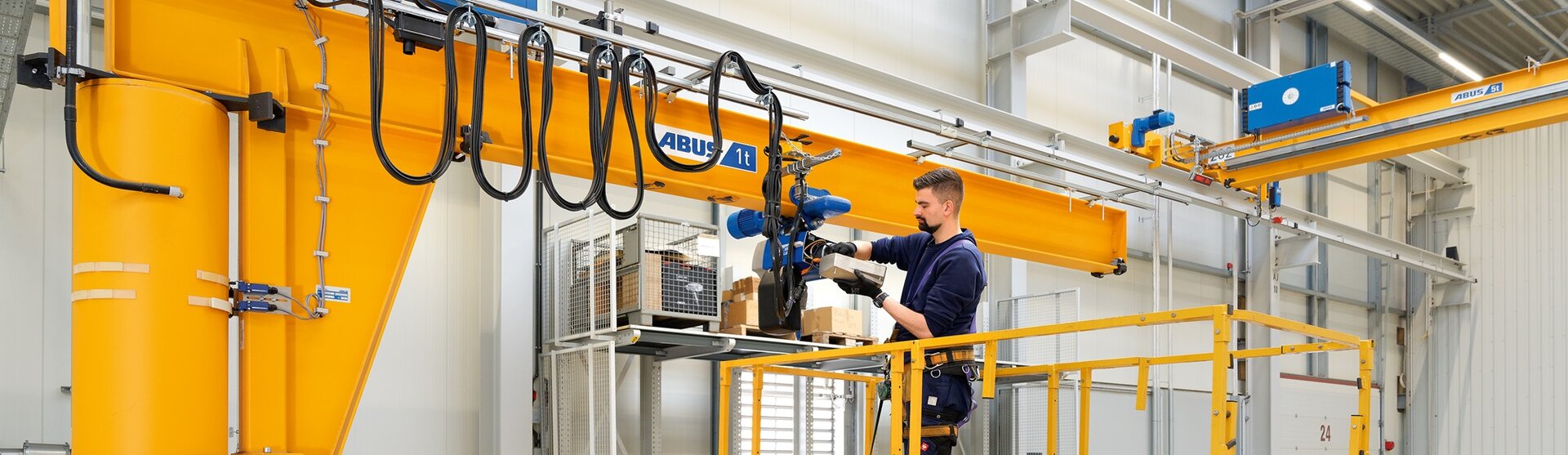 Les systèmes de ponts roulants ABUS sont utilisés partout où des charges lourdes de 80 kg à 120 t doivent être déplacées. Qu'il s'agisse de levage ou d'abaissement, de transport linéaire ou sur toute la surface, nos solutions s'adaptent parfaitement aux géométries de halles et aux exigences système les plus diverses. Elles augmentent ainsi la productivité de nombreuses entreprises de renom et sont utilisées à l'échelle internationale par des entreprises industrielles et artisanales de nombreux secteurs, notamment l'industrie sidérurgique, la fabrication et la transformation de l'acier, l'industrie automobile, la construction mécanique, les chantiers navals, la transformation des matières plastiques, la construction métallique, l'industrie du bois, la construction d'éoliennes et bien d'autres encore.