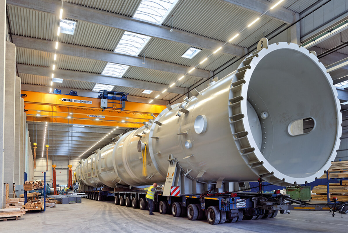 La synchronisation ABUS de deux chariots de direction sur un pont roulant permet une manipulation fiable des produits longs. Toute dérive des crochets de levage dû à des vitesses différentes est éliminée, permettant un fonctionnement parfaitement simultané. Pour cela, les appareils doivent être équipés de variateurs de vitesses. Les vitesses de déplacement peuvent également être régulées sur les ponts en marche tandem. Deux ponts, et jusqu‘à quatre chariots de direction peuvent être synchronisés sur tous les mouvements.