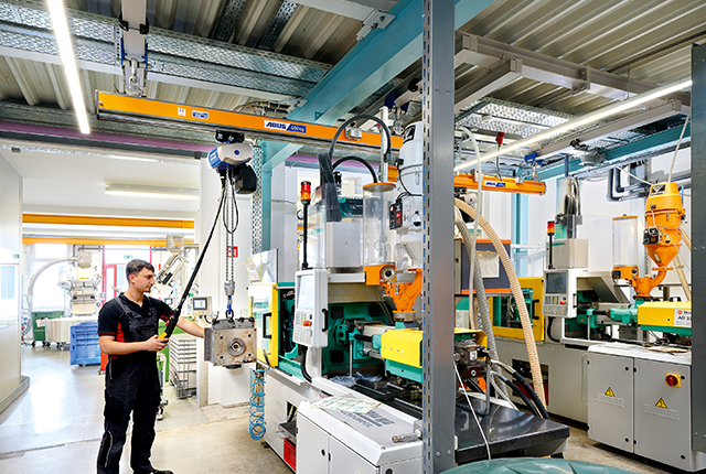 Pour un transport de marchandises sensibles, nous recommandons notre variateur de fréquence ABULiner pour une opération de levage en continu et en douceur. Le positionnement exact lors de processus de montage et d'assemblage difficiles est ainsi considérablement facilité.