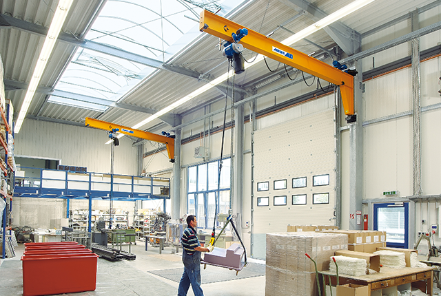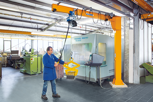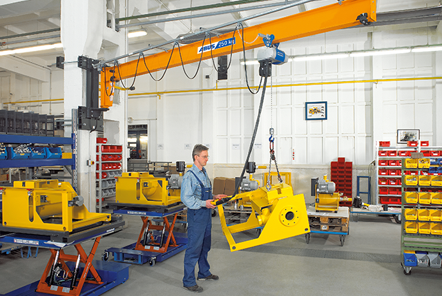Elles fonctionnent sur simple pression d'un bouton et lèvent facilement et avec précaution des charges allant jusqu'à 6,3 t. Peu importe qu’elles se tiennent sur leur propre fût ou qu’elles soient montées sur des murs ou des piliers. Qu'il s'agisse de charger des machines, de changer des outils lourds ou de soulever des pièces à façonner sur des ateliers de travail – avec les potences ABUS le levage devient plus facile, plus économique et plus sûr.
