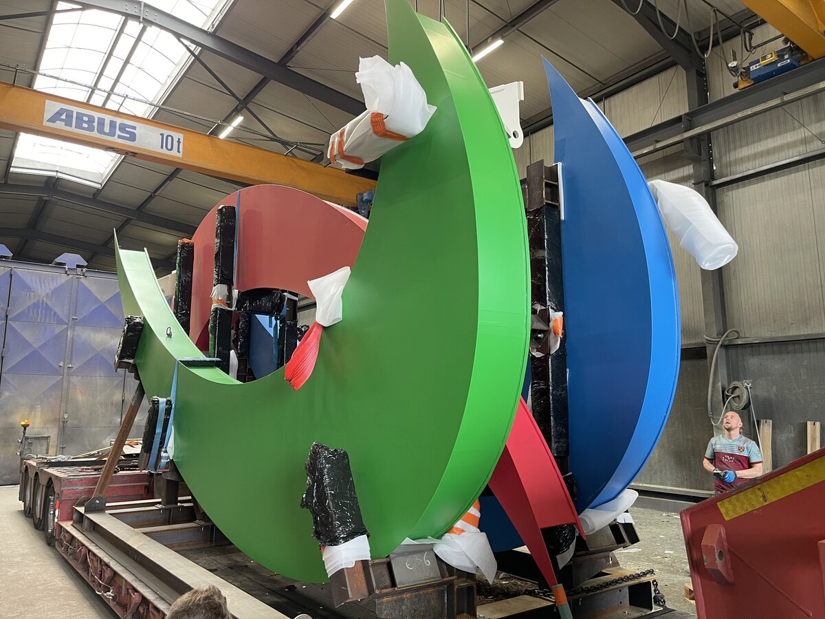 Ces structures monumentales, arrivées en 11 tronçons de 8 x 3 mètres dans les ateliers de Chiarizia, pesaient entre 1,4 et 3,5 tonnes chacune. Une fois assemblée, l’installation finale affiche 29 mètres de largeur pour 13 mètres de hauteur. Ce type de projet requiert une grande maîtrise dans la manipulation de pièces volumineuses et lourdes, étape pour laquelle les équipements de levage jouent un rôle essentiel.