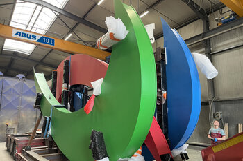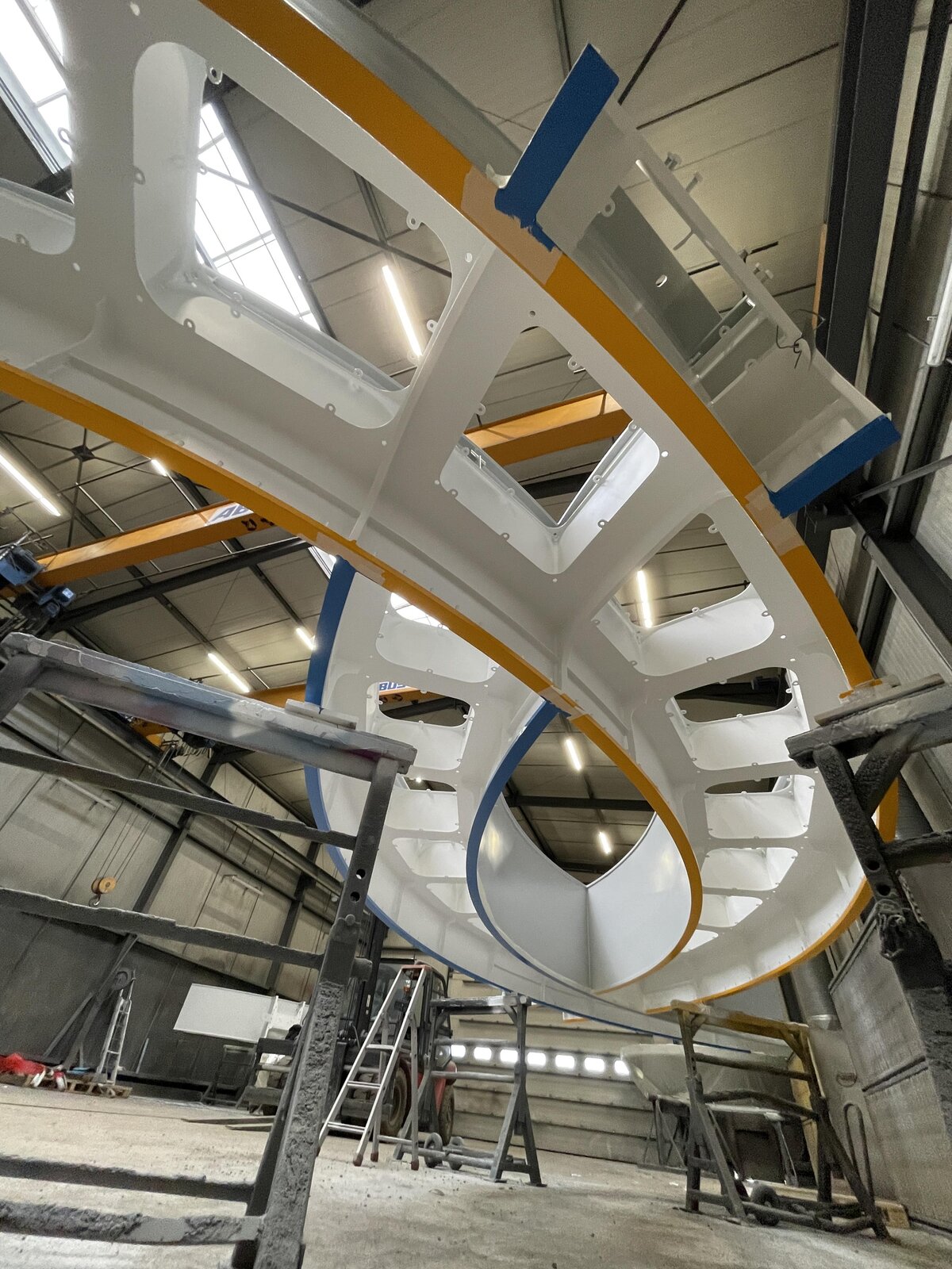 Ces structures monumentales, arrivées en 11 tronçons de 8 x 3 mètres dans les ateliers de Chiarizia, pesaient entre 1,4 et 3,5 tonnes chacune. Une fois assemblée, l’installation finale affiche 29 mètres de largeur pour 13 mètres de hauteur. Ce type de projet requiert une grande maîtrise dans la manipulation de pièces volumineuses et lourdes, étape pour laquelle les équipements de levage jouent un rôle essentiel.