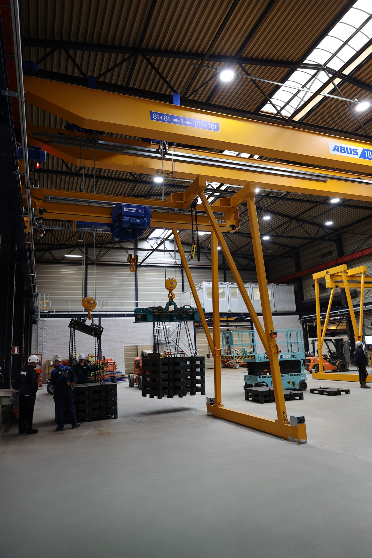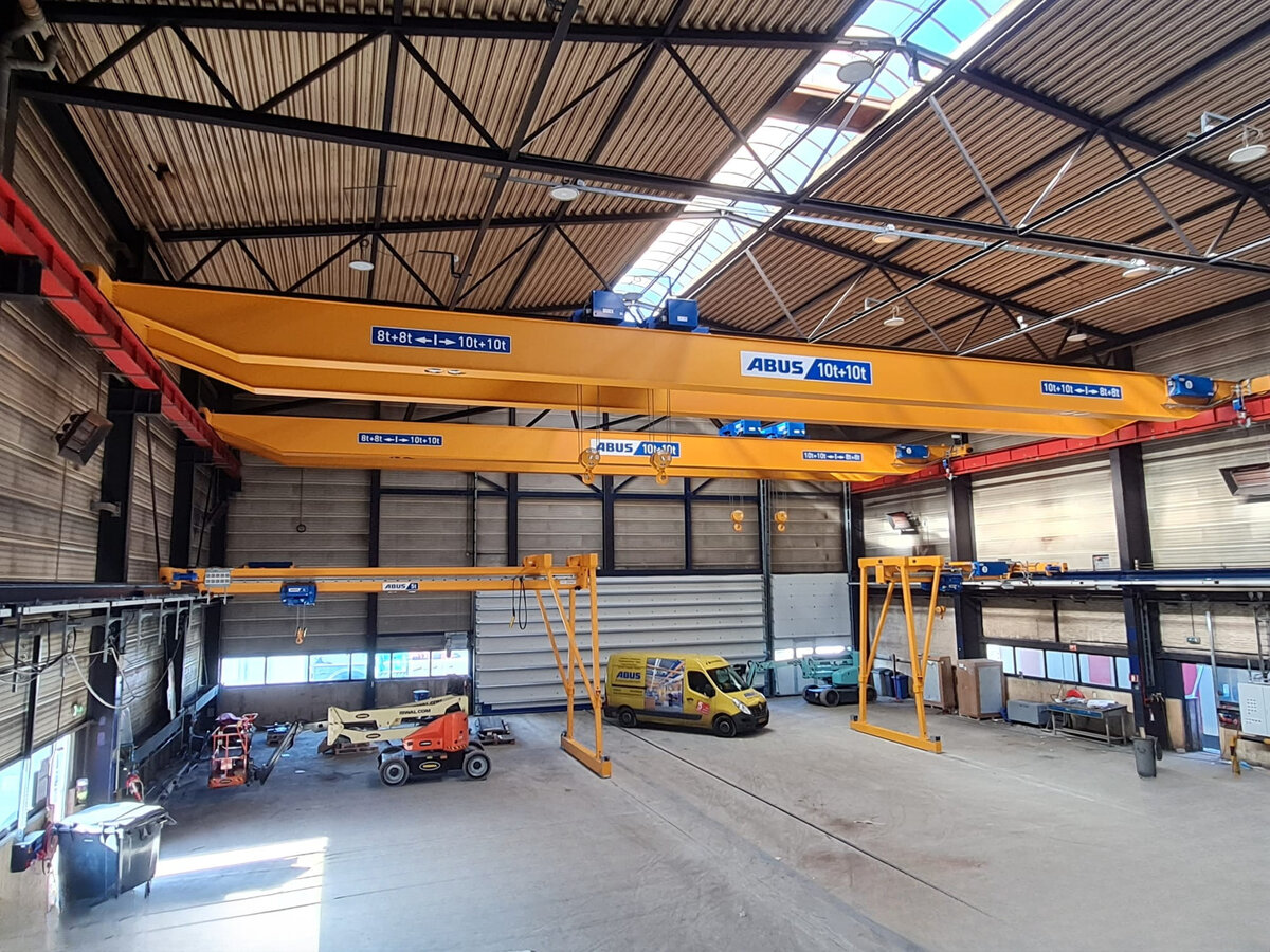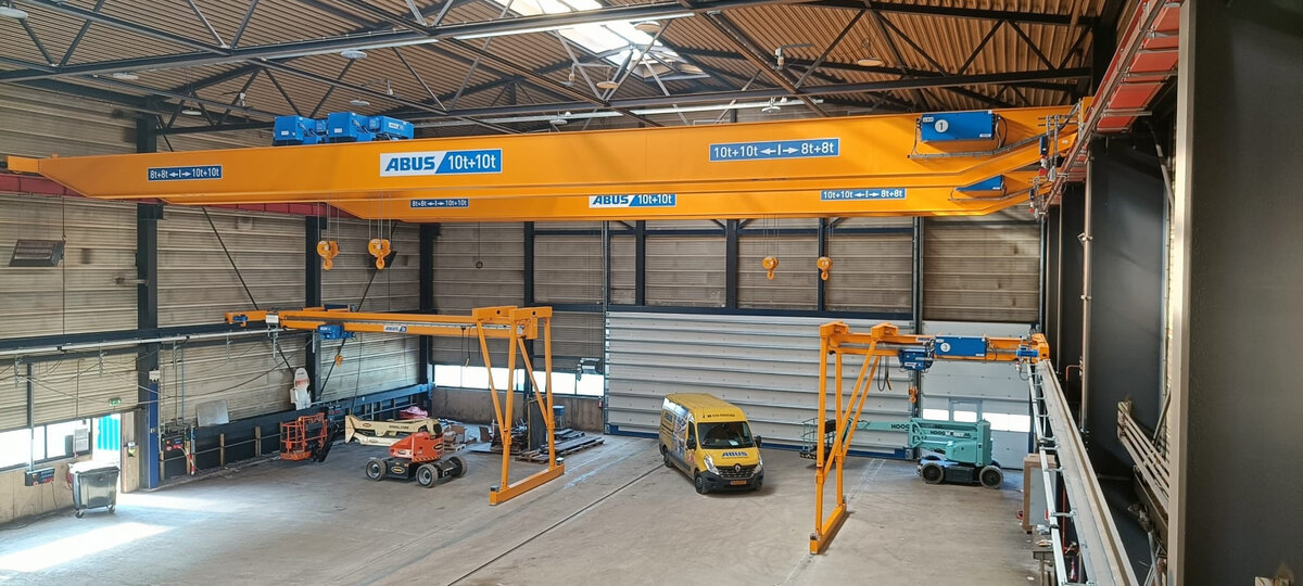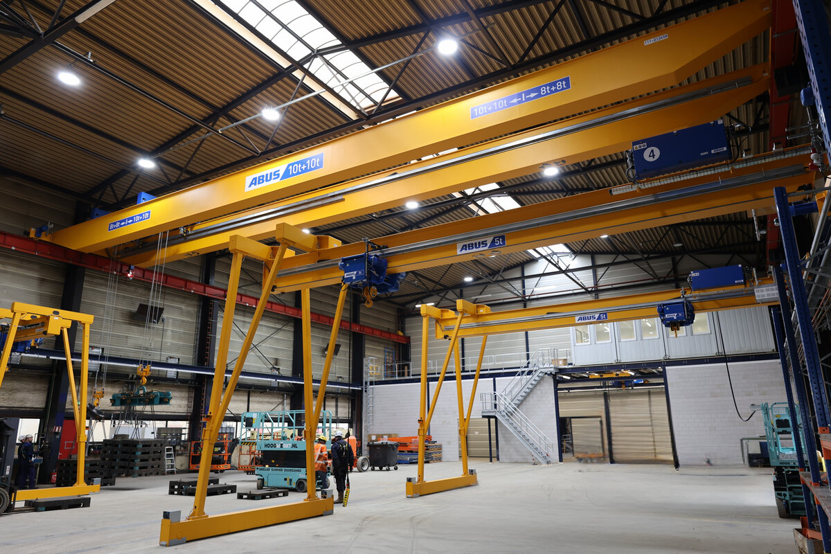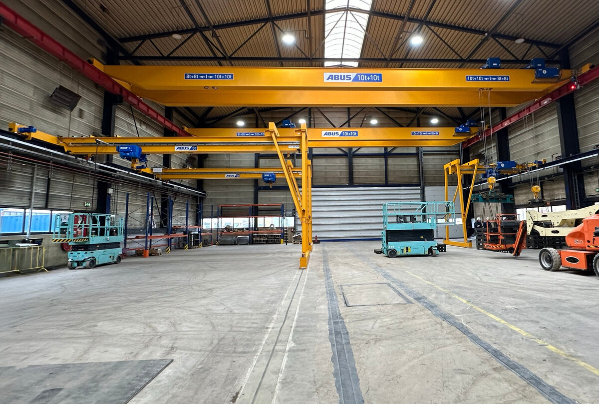 Chez Hollandia, à Krimpen aan den IJssel, spécialiste de la conception et de la construction de structures métalliques complexes, ABUS Kraansystemen (NL) joue un rôle clé dans les opérations quotidiennes du site de production. Dans l’un des vastes halls de l’entreprise, plusieurs systèmes de ponts roulants ont été installés afin de permettre le déplacement de composants métalliques lourds en toute sécurité, avec précision et efficacité.